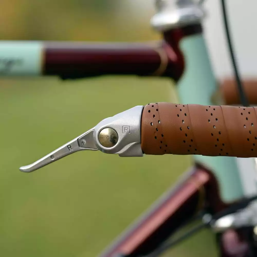 De handlebar end shifters van de firma Dia-Compe bieden iedere old-classic rijder de mogelijkheid om zijn versnellingen ook op het dropstuur te kunnen bedienen.