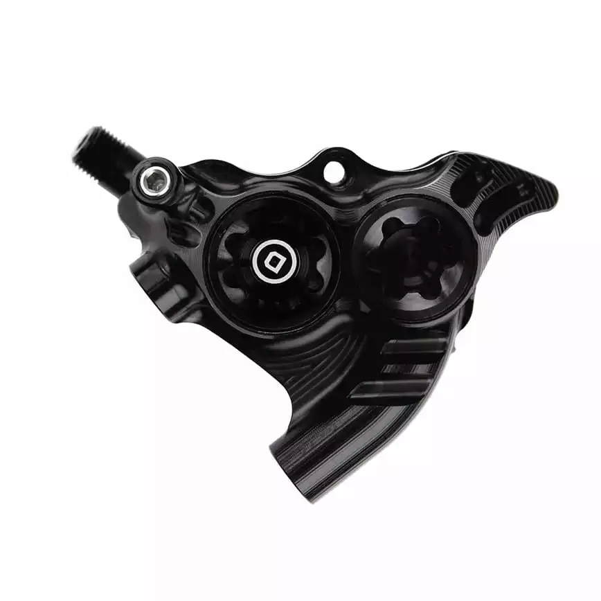 Een speciale 4-zuiger remklauw die compatibel is met Sram hydraulische racefiets hendels.