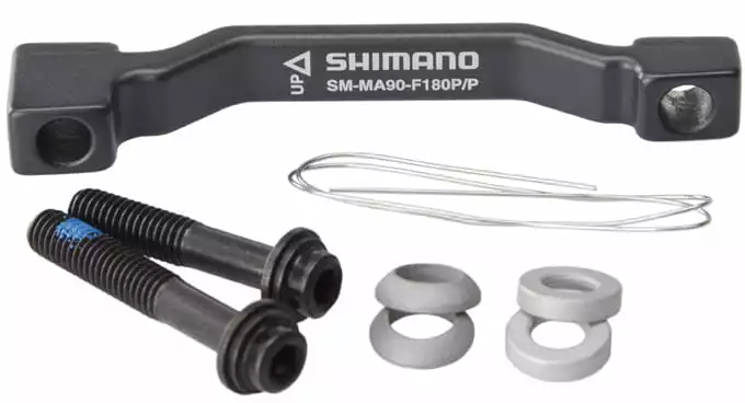 De SM-MA90 remadapter is voor Shimano XTR en XT schijfremmen om de rem aan te passen aan verschillende rembevestigingen op frames of vorken. De uitsparing in de adapter scheelt één of twee gram.